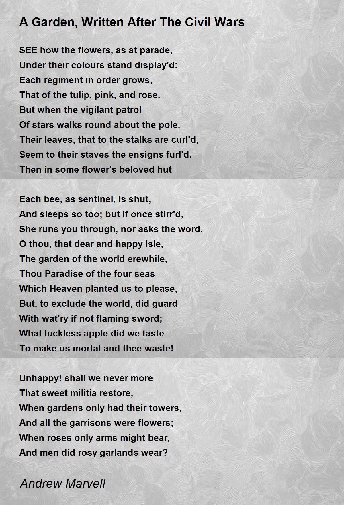 A Garden Written After The Civil Wars Poem By Andrew Marvell