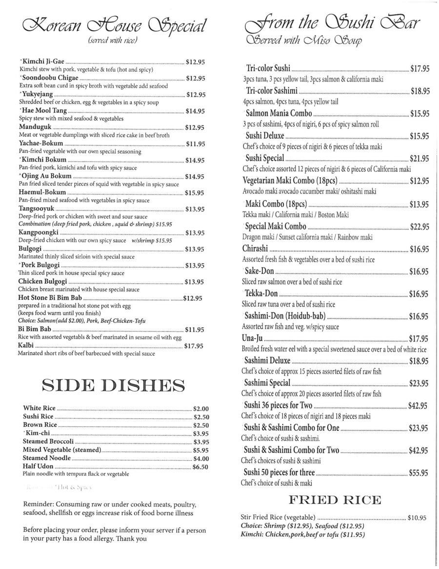 Korea Garden Restaurant Menu Menu For Korea Garden Restaurant
